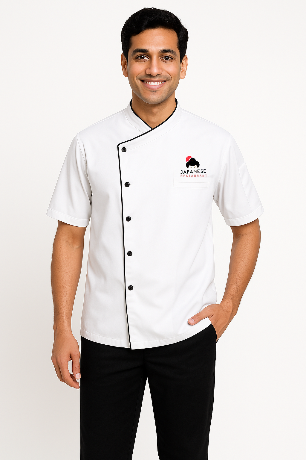 Improve both your performance and appearance in the kitchen with the ChefLite Coat. This short sleeve coat offers a sleek and professional look while also providing breathability, wrinkle resistance, and day-long comfort. Featuring a mandarin collar, multiple pockets, and a unisex fit, it's the perfect choice for chefs working in fast-paced environments. Made with a durable 65/35 poly-cotton blend.