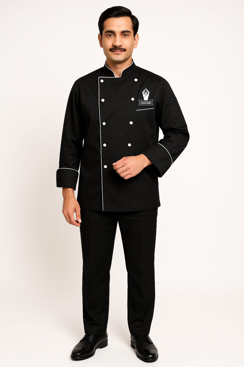 The DoubleCrest Coat is a stylish and professional chef coat, expertly tailored for a sleek fit. Made from a soft blend of polyester and cotton, with a snap button closure, mandarin collar, and multiple pockets for convenience. Personalize with your name and logo for a customized touch.