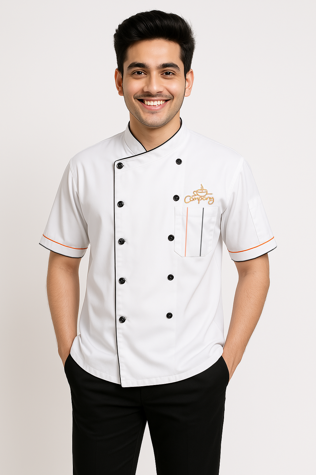 Introducing the FlexFit Unisex Coat  - perfect for any Baker, Chef, or aspiring Chef. With a button closure and two convenient pockets, one on the chest and a utility pocket on the left sleeve. Made of high-quality breathable material, this jacket is perfect for long hours in the kitchen. Customize with your own personal touch for a professional and polished look.