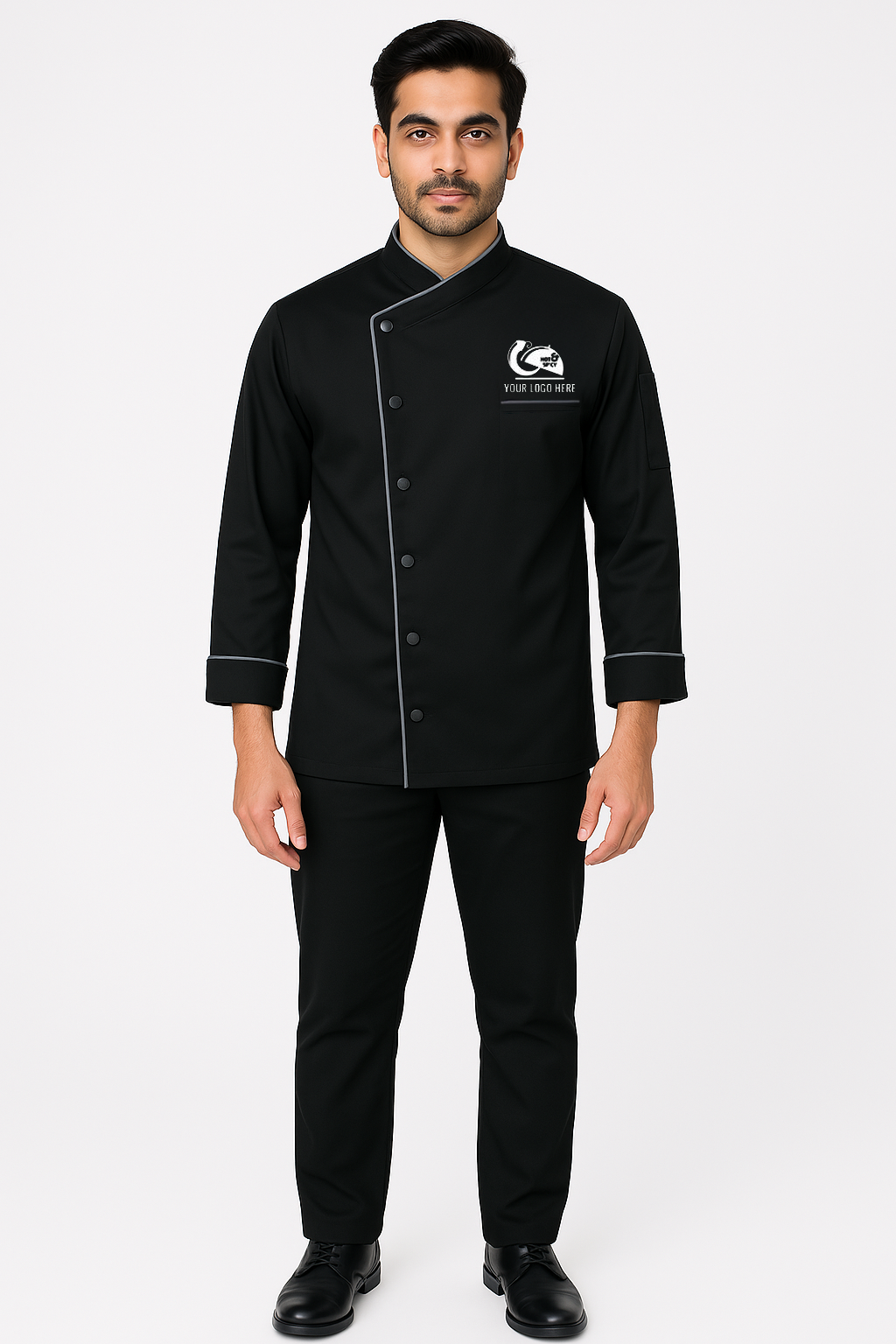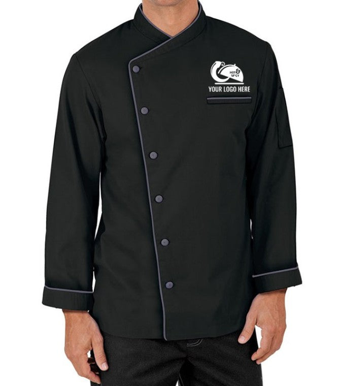 Introducing the FoldCuff Luxe Coat. This designer chef coat is a perfect combination of style and function, with its trim design, full-sleeves, and button closure. Keep your ingredients close with a front chest and sleeve pocket while staying comfortable in the soft 65/35 polyester-cotton fabric. Personalize with embroidery for a professional touch.