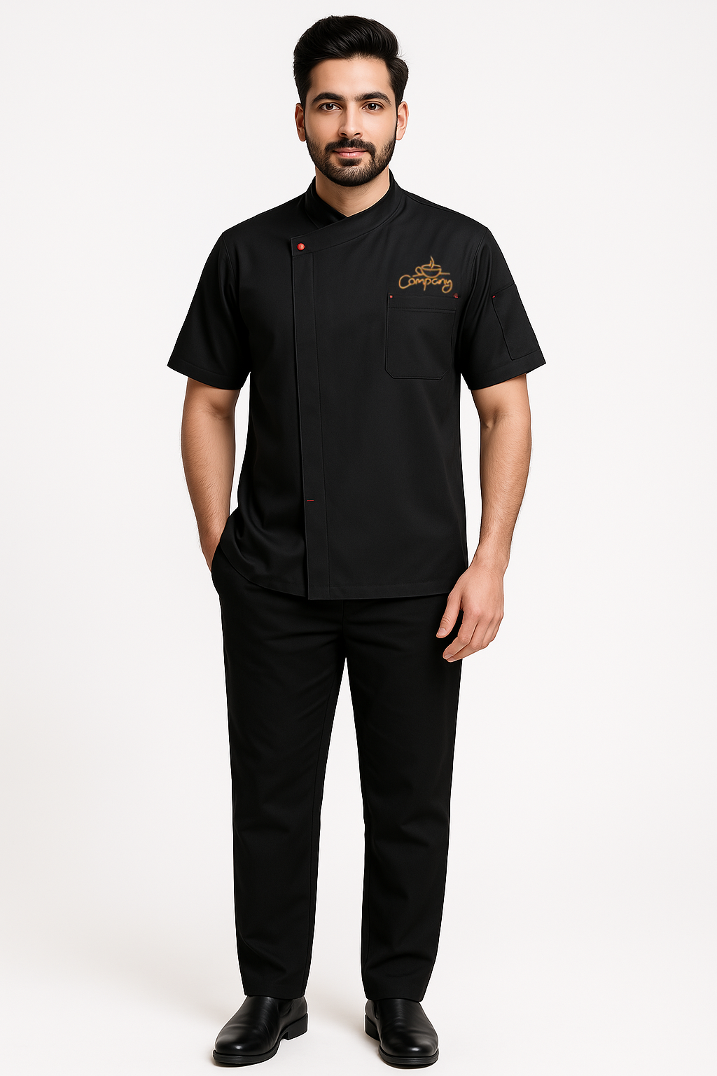 Elevate your chef game with the FormaFit Short Sleeve Coat. Made of a 65% polyester and 35% cotton blend, this durable and breathable coat offers wrinkle resistance and all-day comfort. The short sleeve design and stand-up mandarin collar provide both freedom of movement and a professional look. With convenient chest and sleeve pockets, this unisex coat is perfect for fast-paced kitchens and culinary professionals.